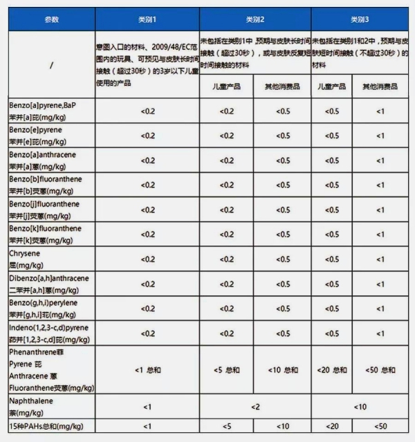 3.新標準PAHs的限值要求如下