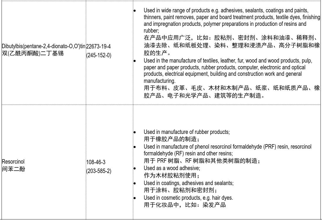此次評議的五種物質(zhì)分別是1-乙烯基咪唑、2-甲基咪唑、對羥基苯甲酸丁酯、雙(乙酰丙酮酸)二丁基錫、間苯二酚。若5種物質(zhì)通過公眾評議,在2020年6月或者7月時,SVHC物質(zhì)可能將從205項增加至210項。