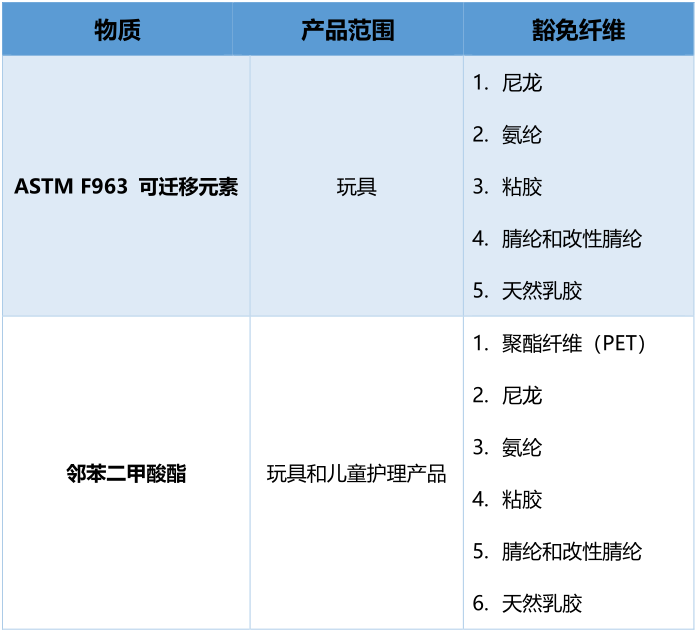因此ASTM F963豁免可遷移元素測試的半成品纖維沒有聚酯纖維(PET)。