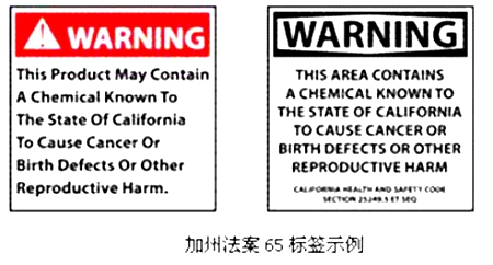 加州65號(hào)提案,即《1986年飲用水安全與毒性物質(zhì)強(qiáng)制執(zhí)行法》,于1986年11月頒發(fā),該提案的目的是維護(hù)加州飲用水源不受已知致癌、生殖毒性的化學(xué)物質(zhì)污染,維護(hù)大眾健康。提案要求商家通過(guò)清晰合理的標(biāo)簽警告消費(fèi)者產(chǎn)品中含有的已知毒性化學(xué)物質(zhì)。目前已有超過(guò)900種化學(xué)品被列為此類化學(xué)品受到監(jiān)管。該提案要求政府至少每年一次公布加州已知的致癌或含有生殖毒性的化學(xué)物質(zhì)。