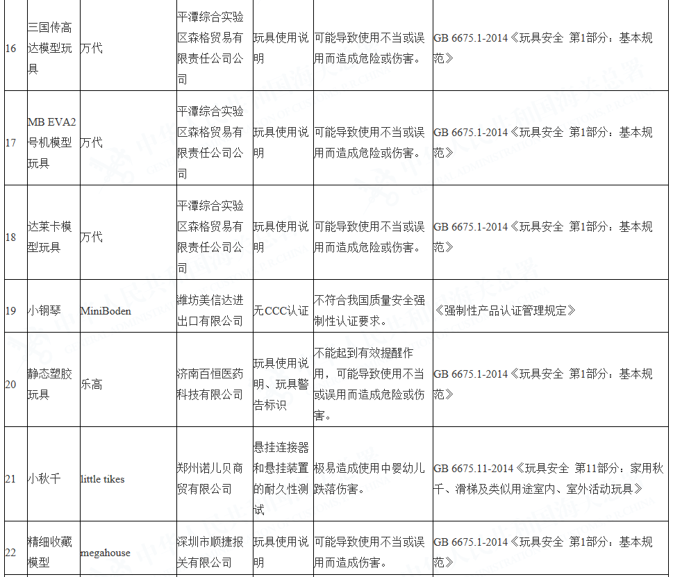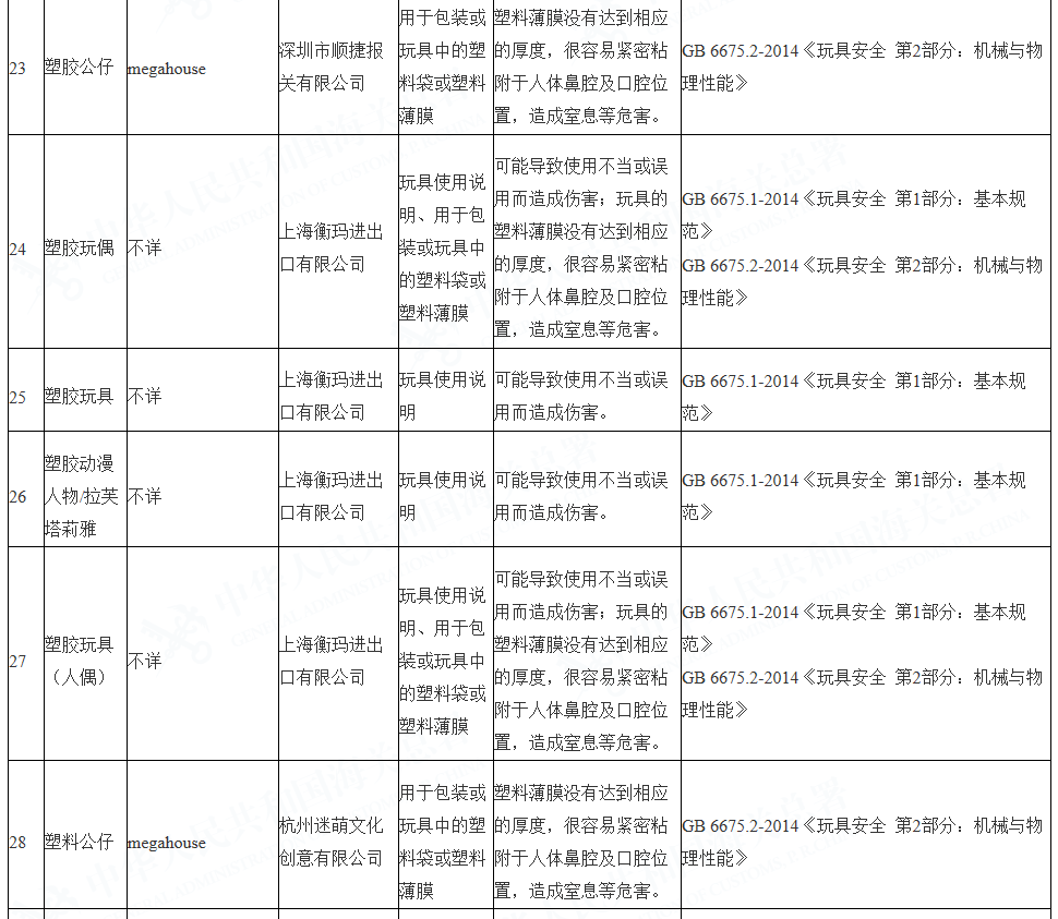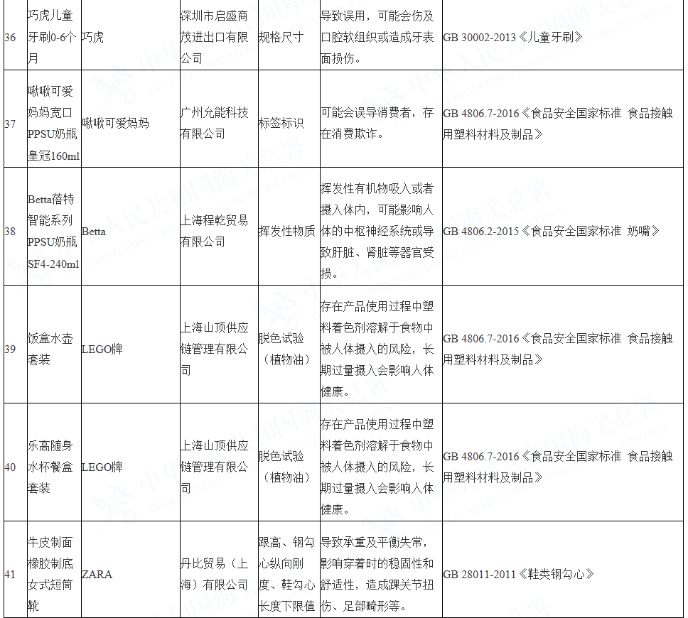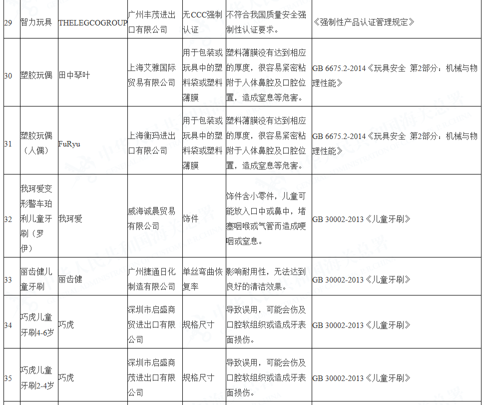 海關(guān)查發(fā)的進(jìn)口兒童用品質(zhì)量安全不合格情況