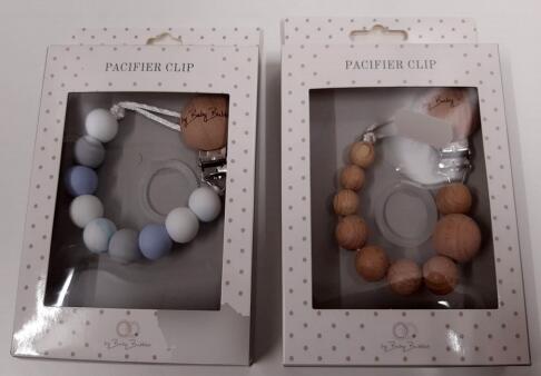 安撫奶嘴支架的衣服緊固件沒有通風孔。由于其形狀和大小,一個小孩可能會將衣服緊固件放在嘴里,從而可能卡住并阻塞小孩的呼吸道。/產品不符合相關的歐洲標準EN 12586。